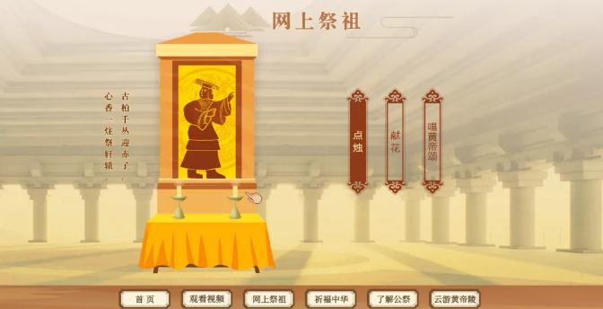 中华云祭祖平台有五大部分,在这里大家可以了解轩辕黄帝的故事,可以在清明节当天,收看辛丑年清明公祭轩辕黄帝典礼的直播并进行现场互动。