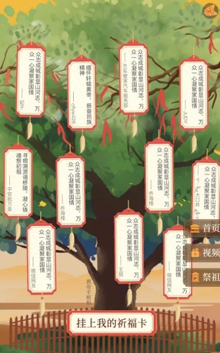 当然,我们还可以通过登录“陕西都市快报”公众号,点击右下角直播栏里的“云”祭黄帝,或者下载闪视频APP,点击“云”祭黄帝专栏看直播,可献花、点烛、黄帝手植柏上悬挂祈福卡,留言互动。全球“云”祭祀,缅怀先祖。